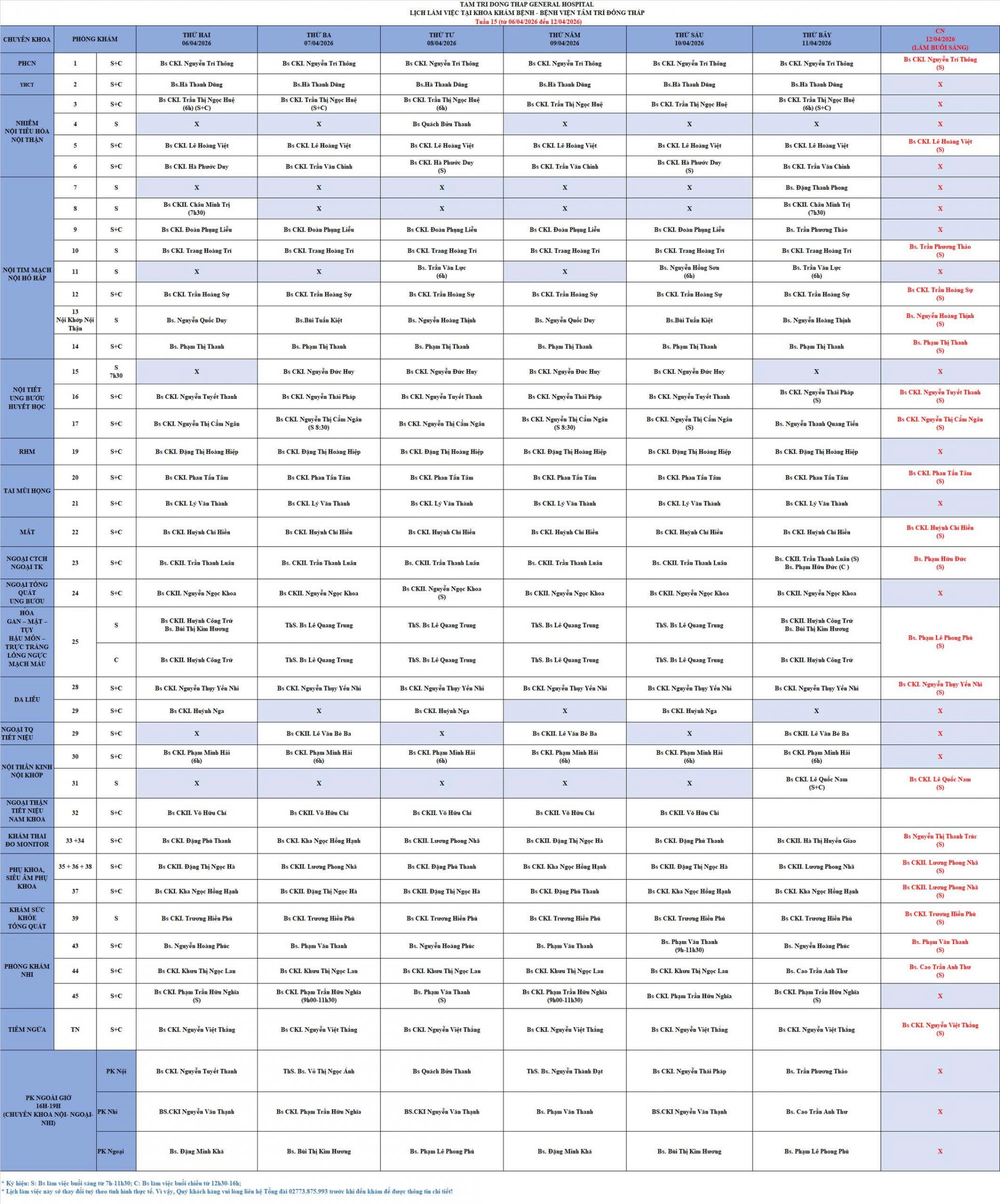 Lịch làm việc tuần 15 (06/04-12/04/2026)