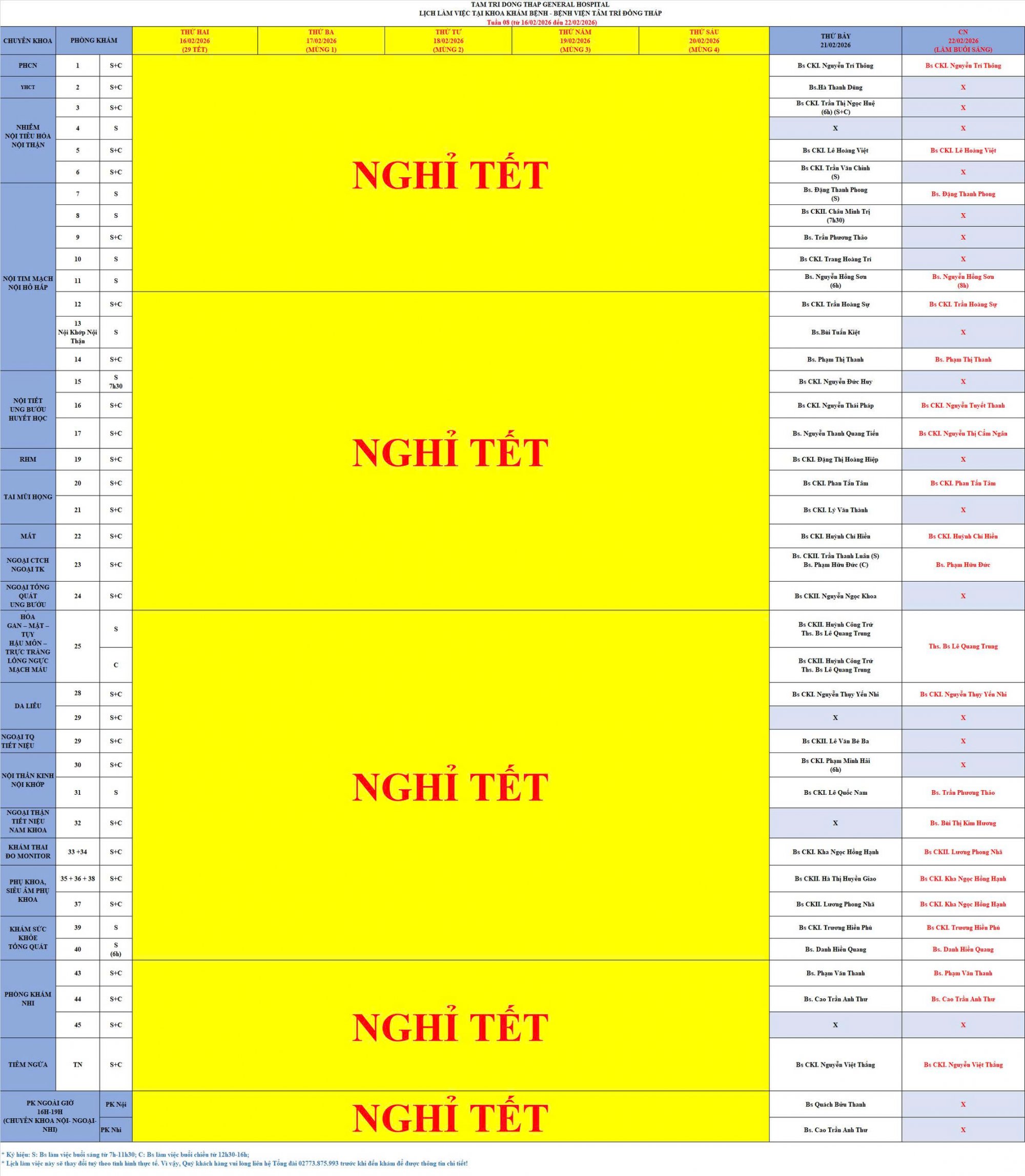 Bệnh viện Đa khoa Tâm Trí Đồng Tháp trân trọng thông báo đến quý bệnh nhân, quý khách hàng, quý đối tác lịch nghỉ Tết Nguyên Đán Bính Ngọ năm 2026